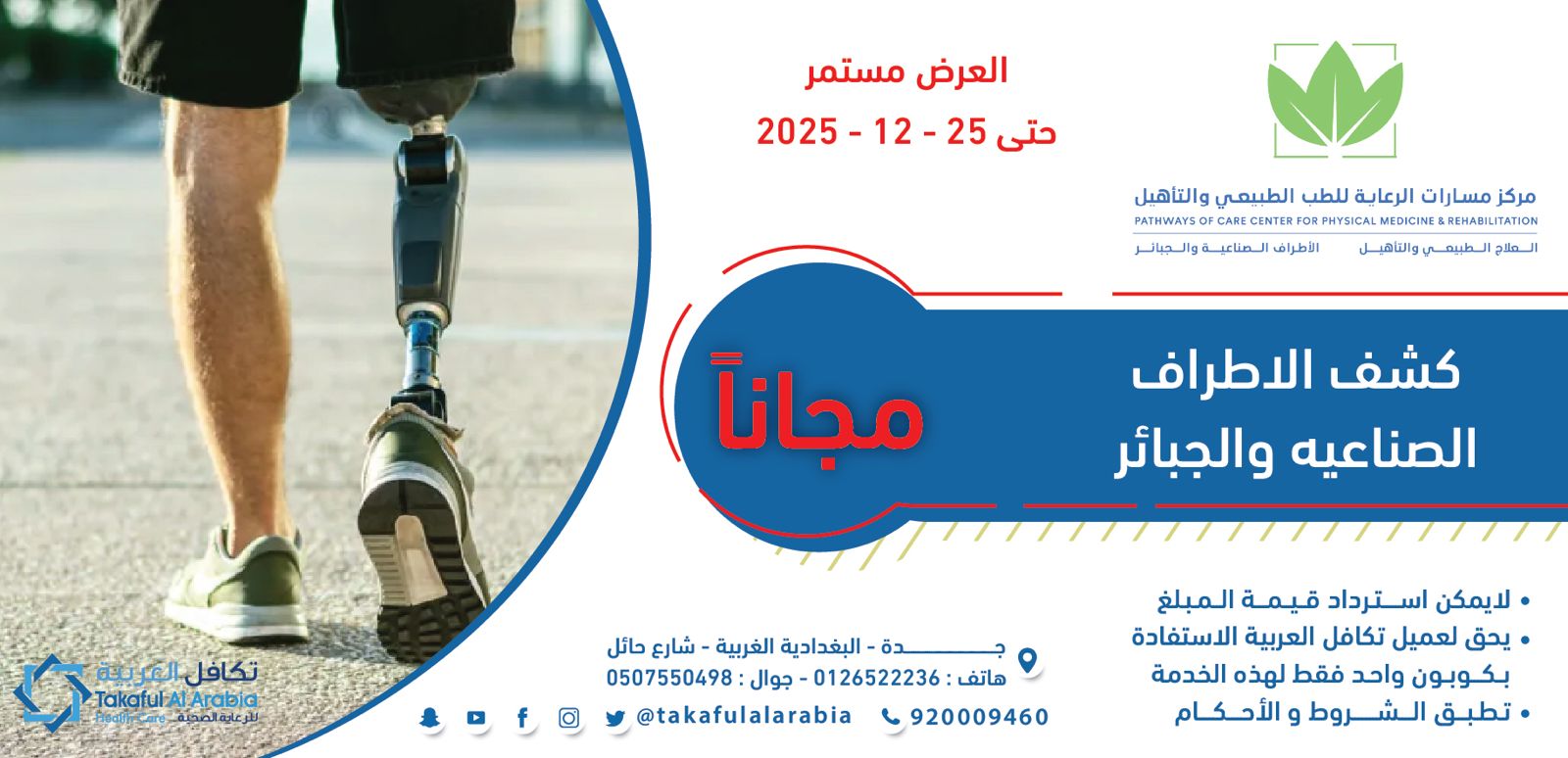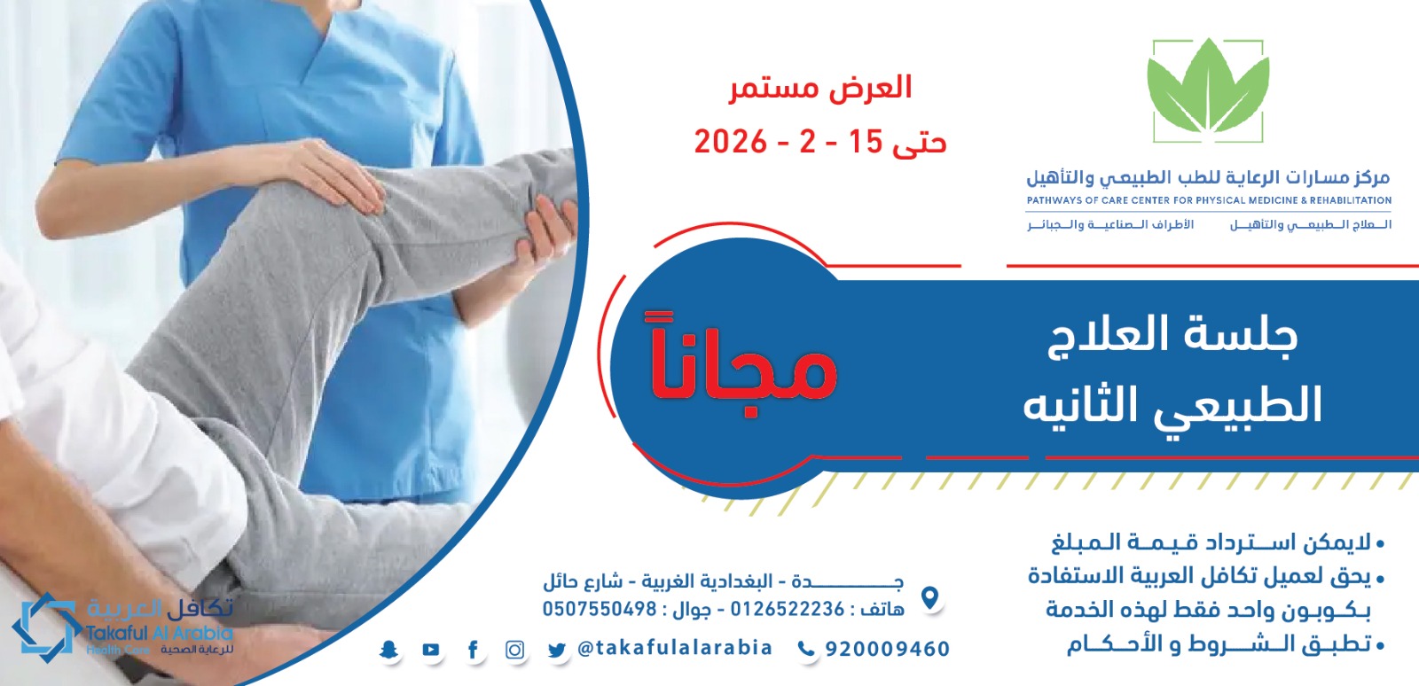 * الكشف مجانا في العلاج الطبيعي لحاملي بطاقة تكافل العربية .