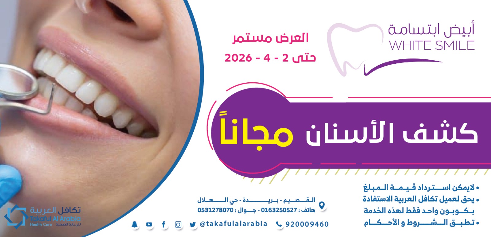 كشف الأسنان مجاناً لحاملي بطاقة تكافل العربية.