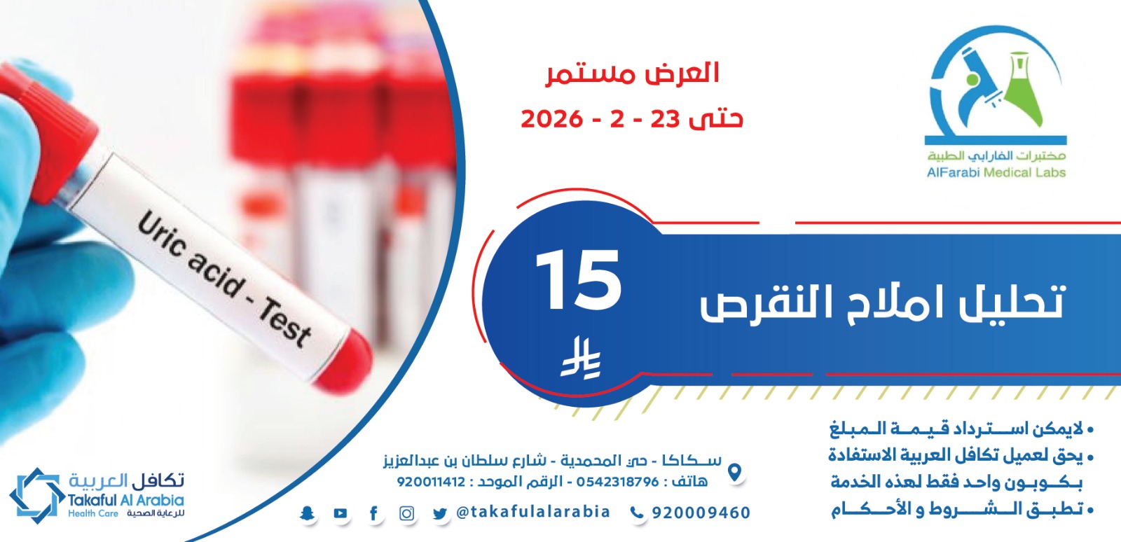 *خصم على جميع التحاليل التي تجري داخل المختبر .