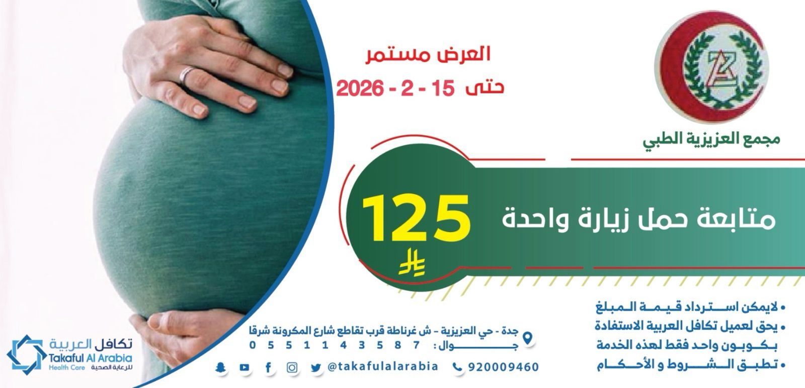 للاستفاده من الخصم : يجب ابراز بطاقة تكافل العربيه مع الهويه قبل اخذ الخدمات وقبل اصدار الفواتير