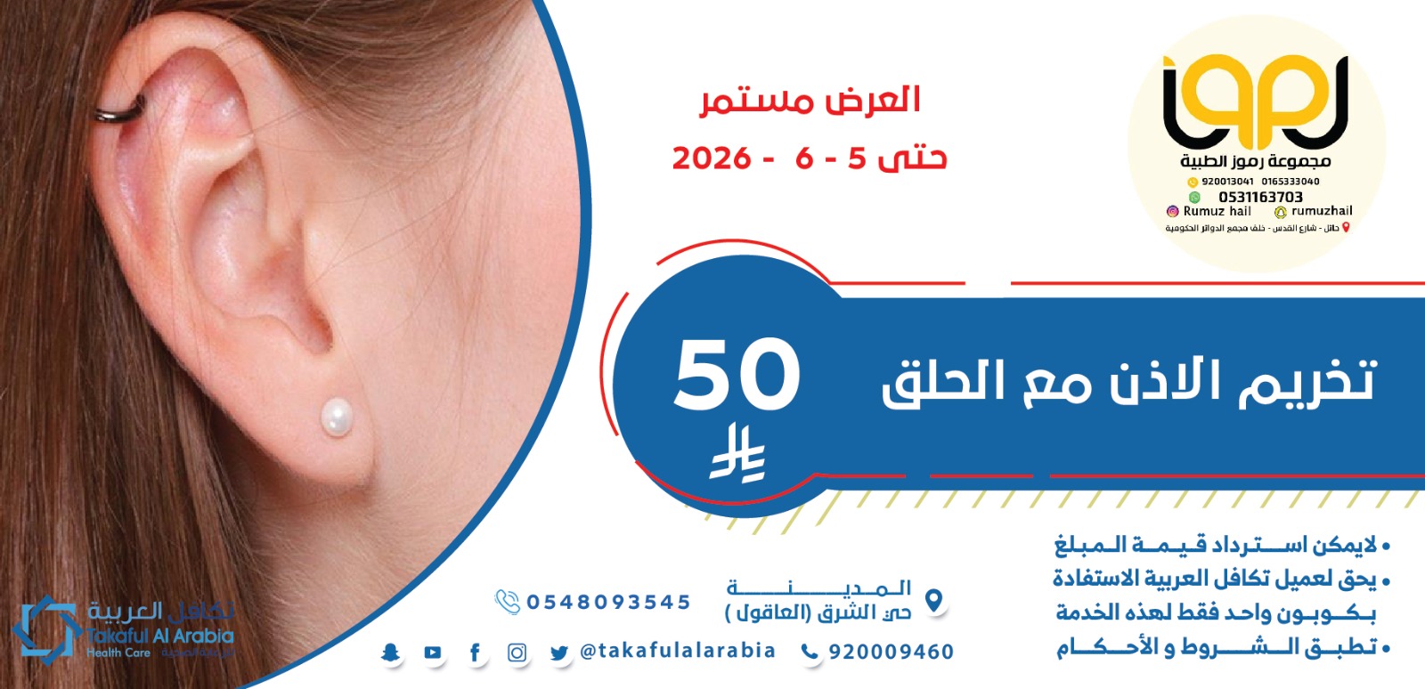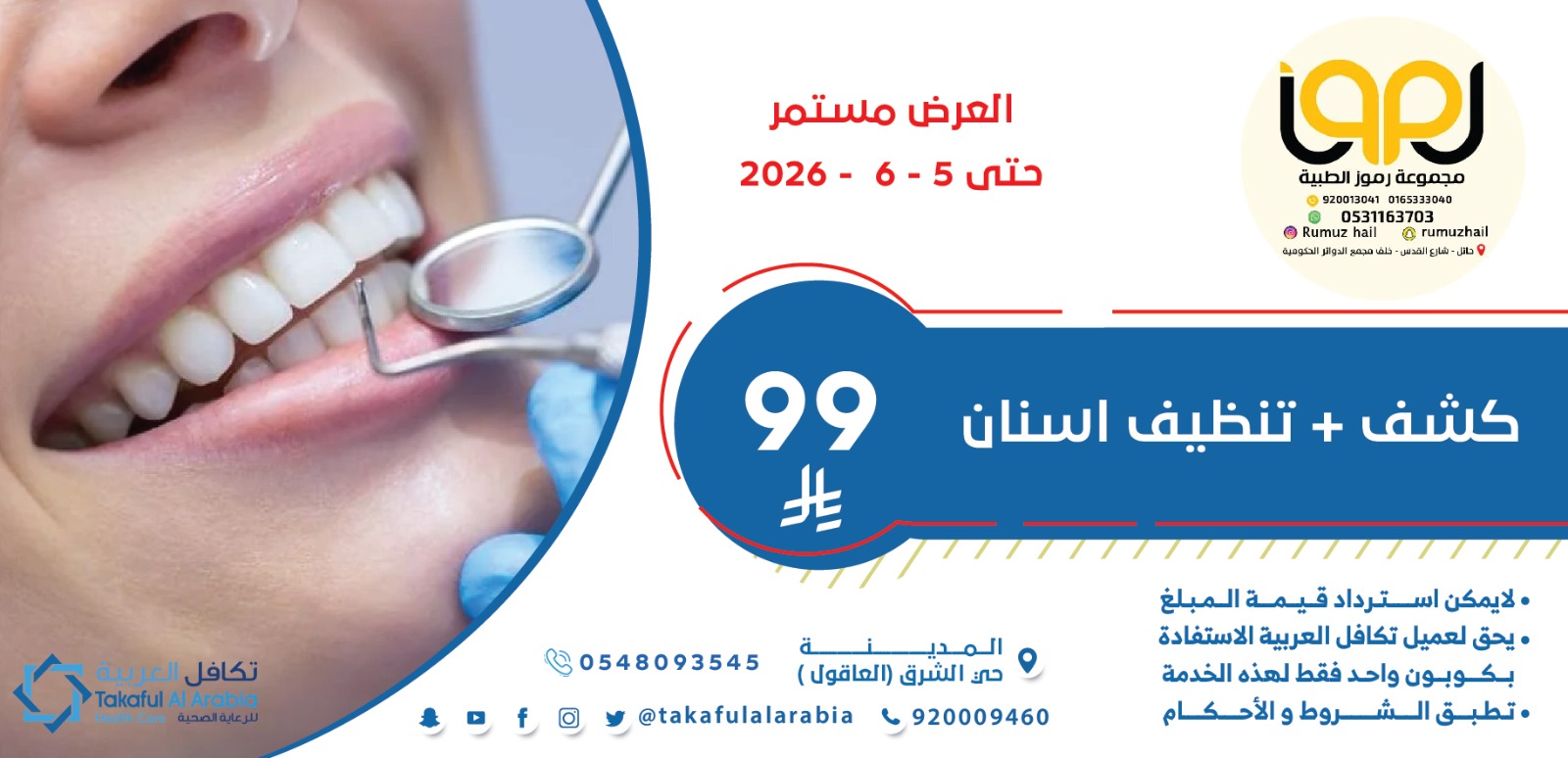 للحصول على الخصم يلزم ابراز بطاقة تكافل العربيه مع الهويه قبل اخذ الخدمه