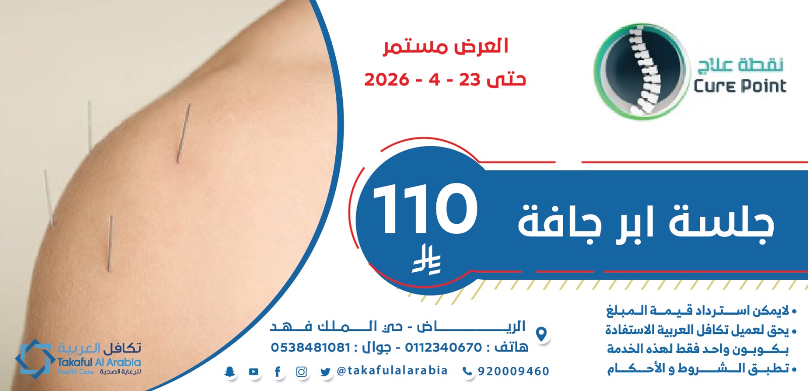 الرجاء ابراز بطاقة تكافل العربية عند موظف الاستقبال قبل عمل اي خدمة