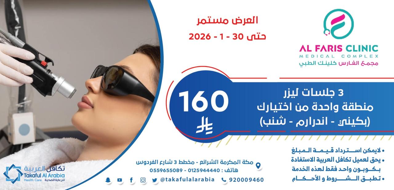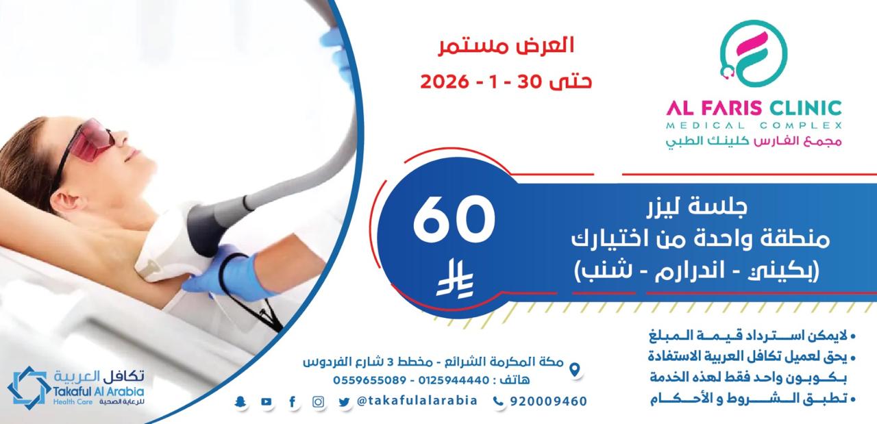 ملاحظه : الخصم لا يشمل العروض ولا يشمل الخصومات الاخرى ولا يشمل الاطباء الزائرين