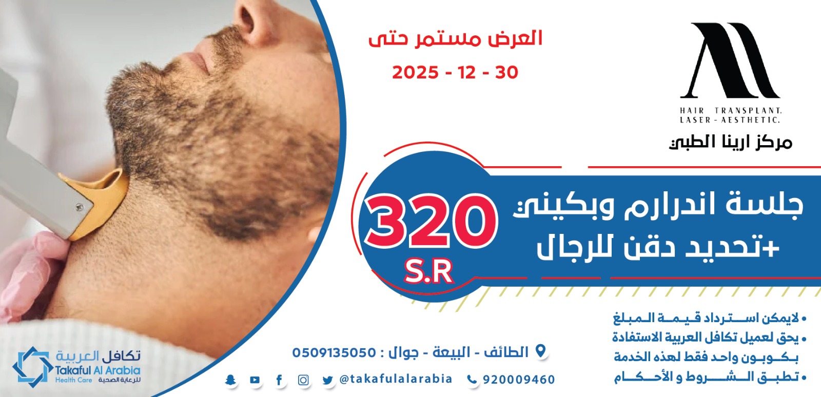 للاستفاده من الخصم يرجى ابرازبطاقة تكافل العربيه مع الهويه قبل اخذ الخدمه