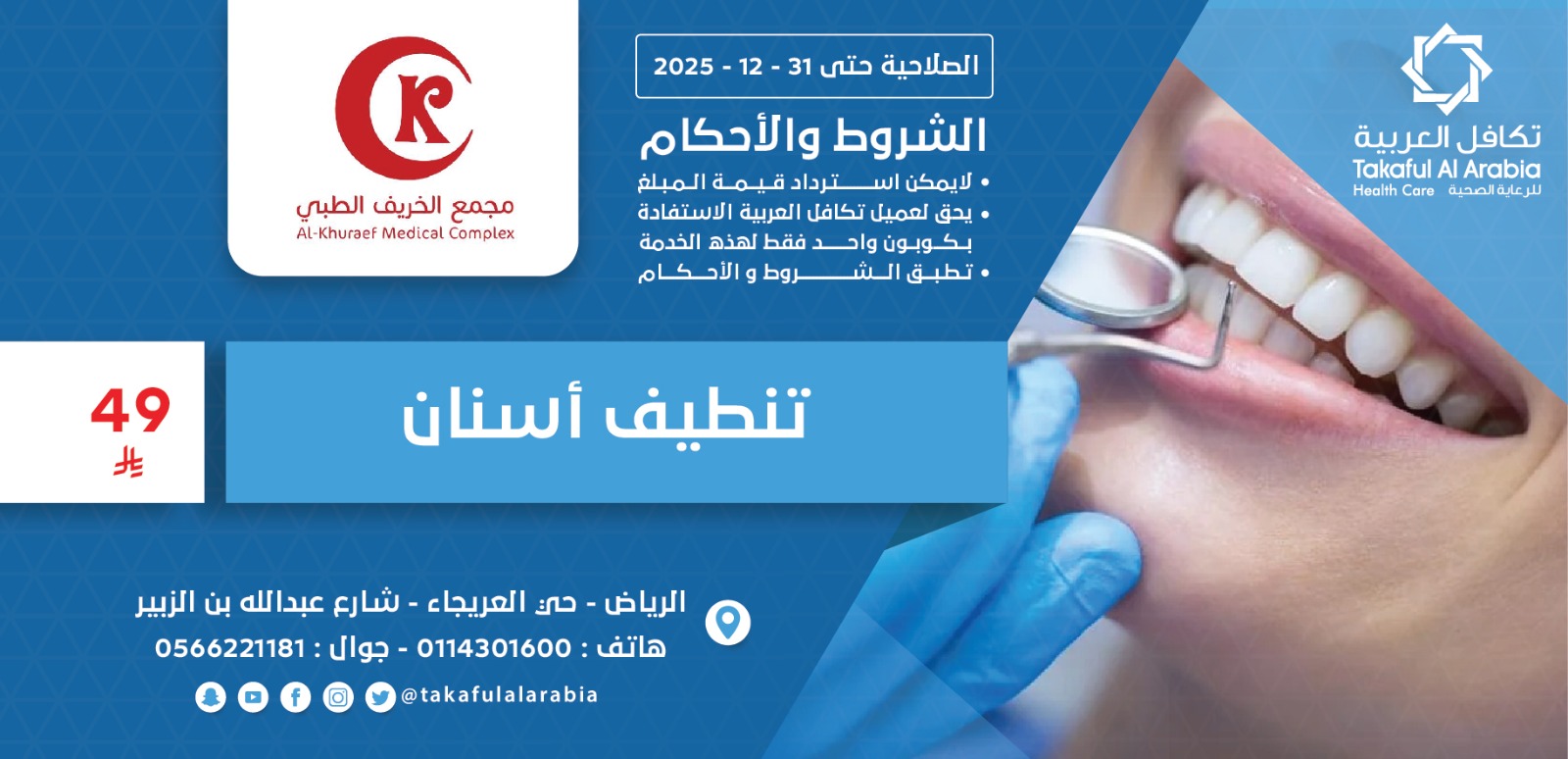 *الكشف وفتح الملف والاستشارة مجانا لحاملي بطاقة تكافل العربية