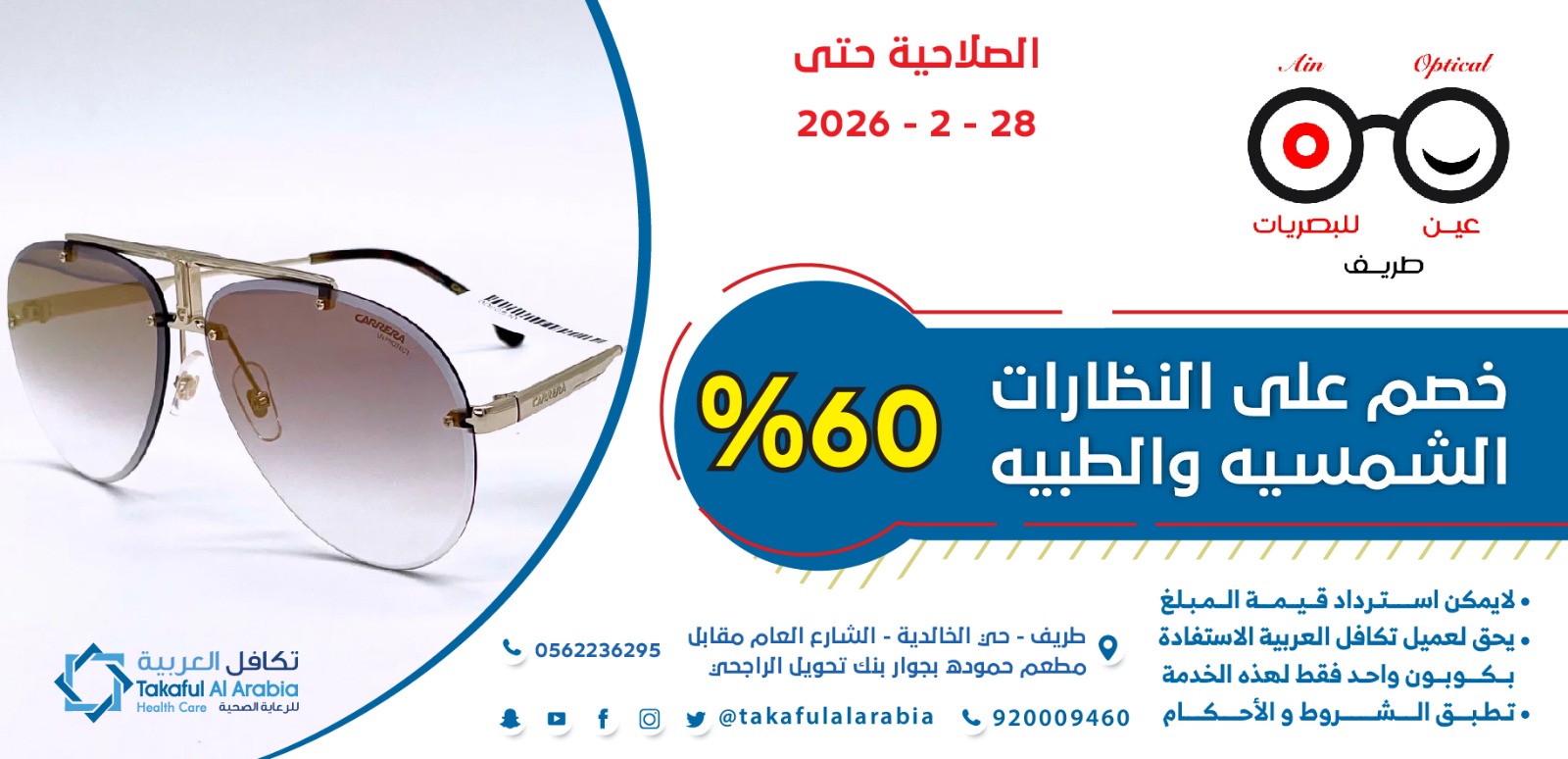 فحص النظر مجانا لحاملي بطاقة تكافل العربية في حال الشراء