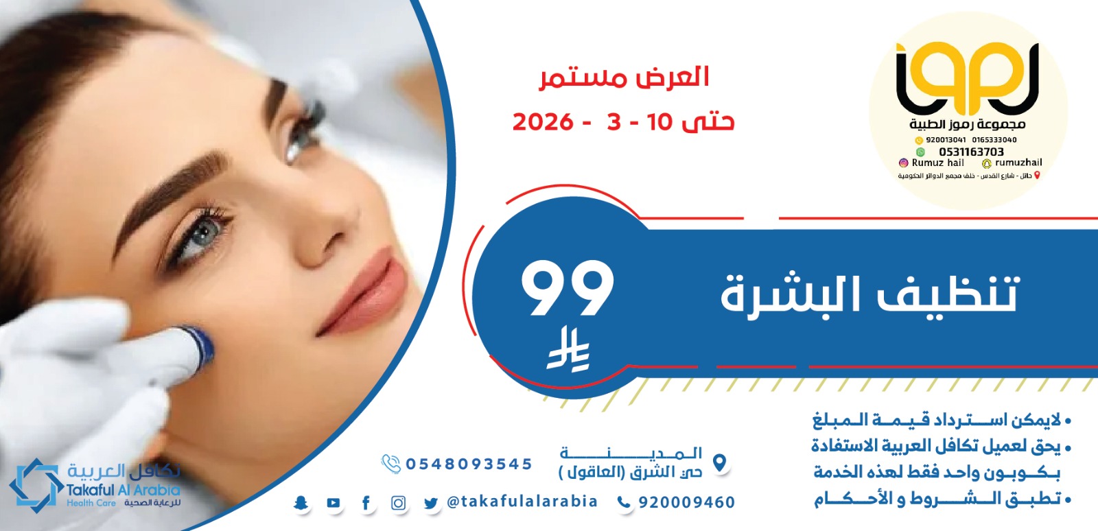 للحصول على الخصم يلزم ابراز بطاقة تكافل العربيه مع الهويه قبل اخذ الخدمه