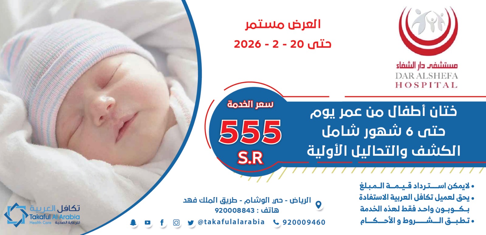 خصم على التحاليل الالزامية للطفل بمبلغ حصري شامل الضريبة